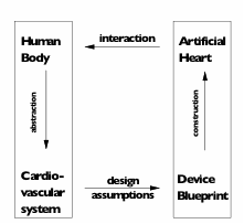 Figure 1.3: An artificial heart is based upon two kinds of model. Firstly, the cardiovascular system has to be modelled, and secondly, a mechanical blueprint is used to model the way the heart will be constructed.